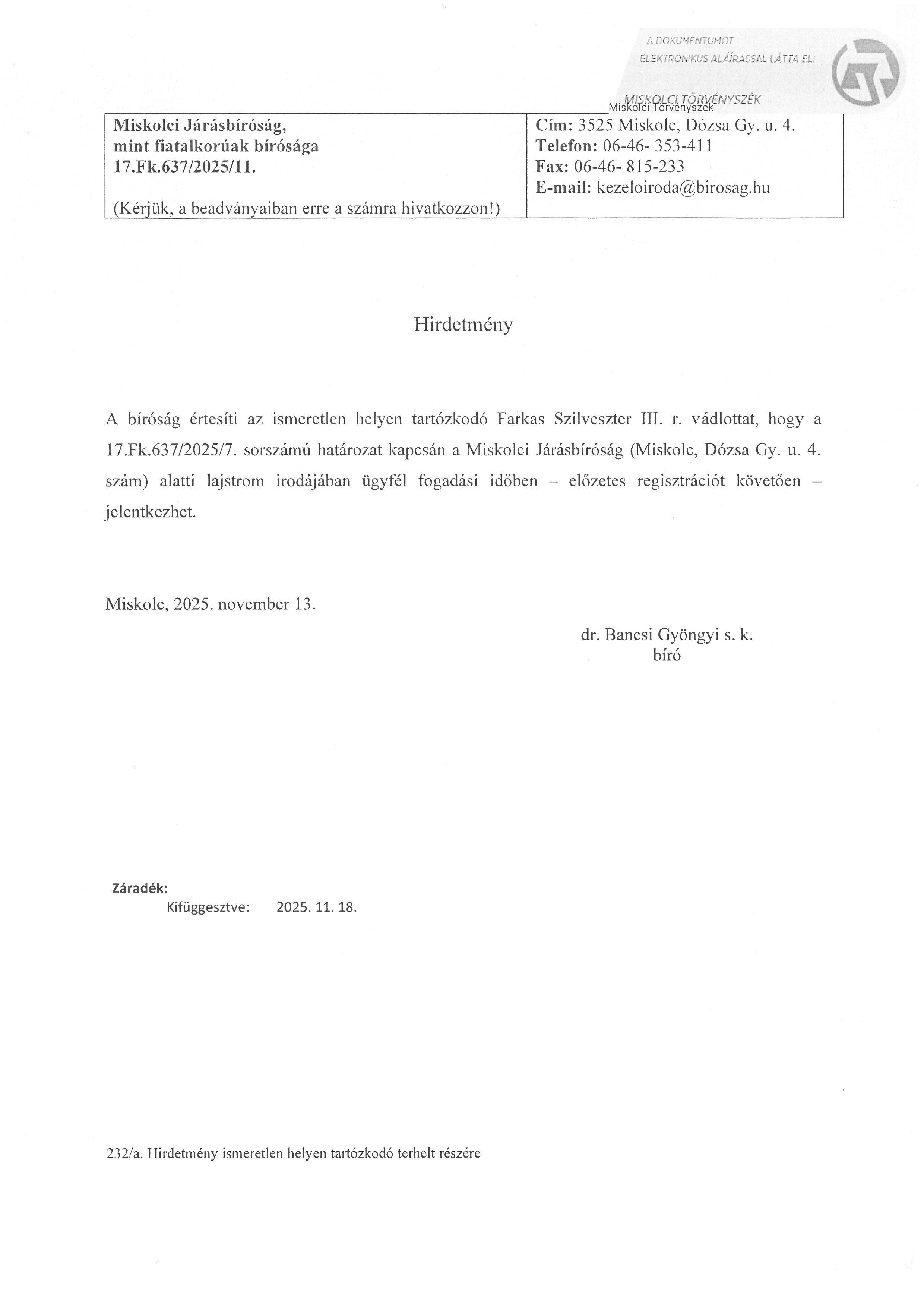 Hirdetmény