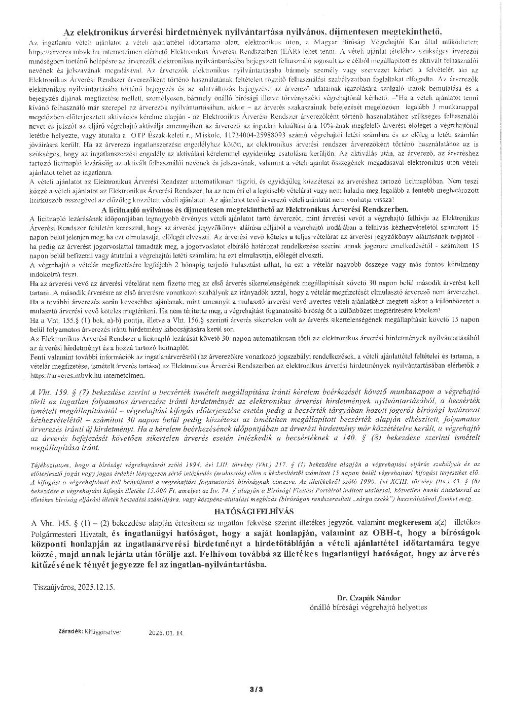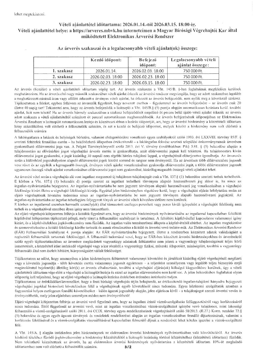 Ingatlanárverési hirdetmény