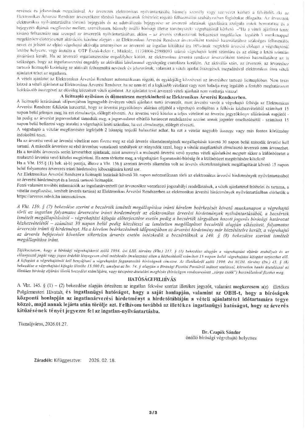 Ingatlanárverési hirdetmény