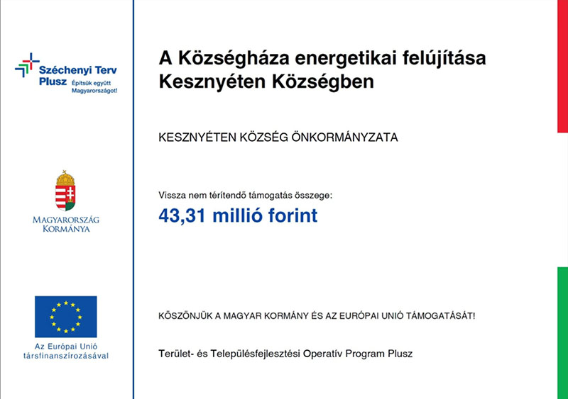 Projekt címe: A Községháza energetikai felújítása Kesznyéten Községben