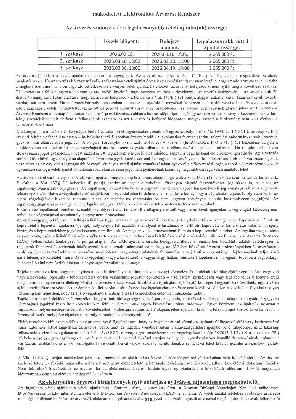 Ingatlanárverési hirdetmény